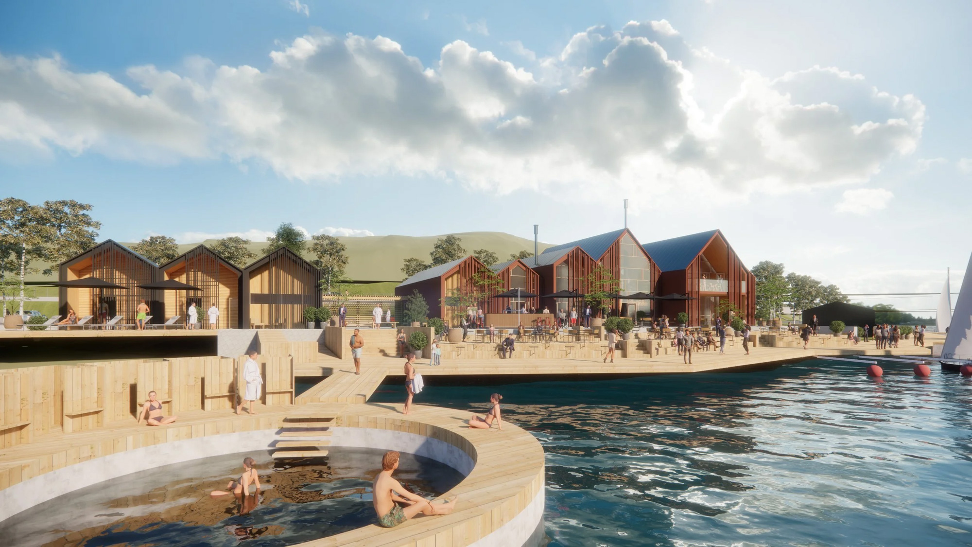 Gatun Arkitekters vinnande förslag, Lidingö Brostrand Sauna, innehåller en året runt-öppen restaurang med bastu och en friliggande traditionell rökbastu. Förslaget innehåller även en mindre småbåtshamn och möjlighet att uppföra en pendelbåtsbrygga.